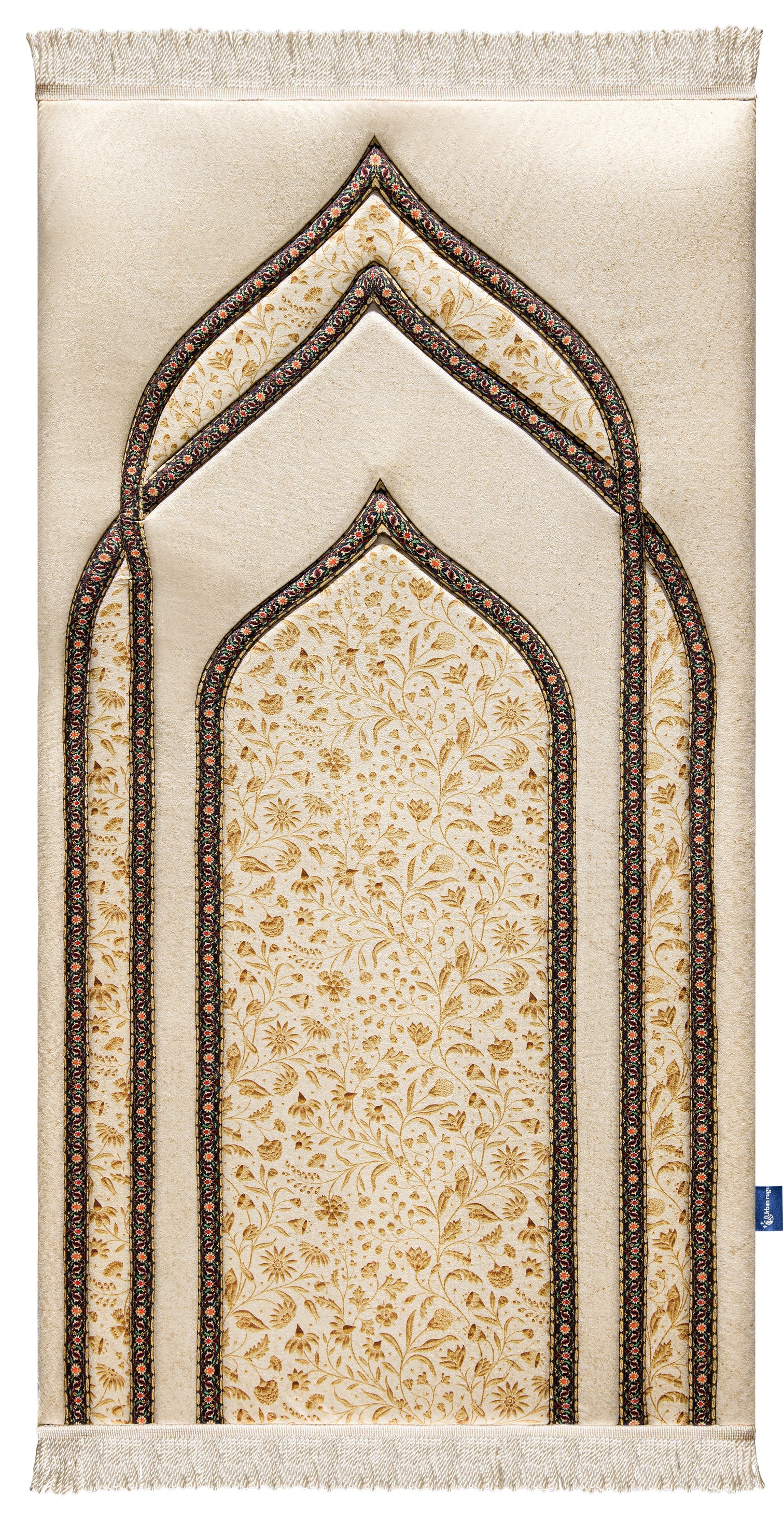 سجادة صلاة مبطنة بتصميم الورود الذهبية